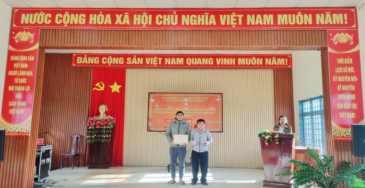 Trong buổi sinh hoạt, đại diện lãnh đạo Ủy ban nhân dân xã đã khen thưởng đột xuất đối với đồng chí A Trường, Chuyên viên Phòng Văn hóa - xã hội xã có thành tích xuất sắc tại Hội thi thể thao các dân tộc thiểu số toàn quốc lần thứ XIV, khu vực II năm 2025 đã góp phần khuyến khích cán bộ, công chức, viên chức và người lao động tích cực tham gia rèn luyện sức khỏe theo gương Bác Hồ.