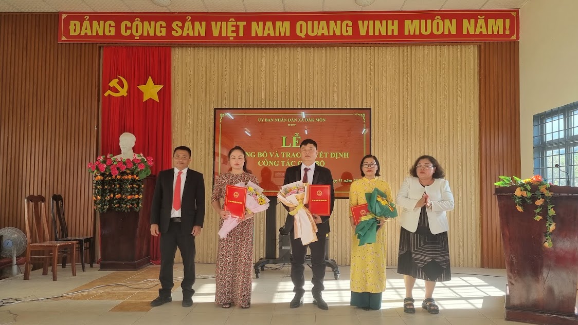Tại buổi Lễ, đồng chí Y Nhuần Trưởng Ban xây dựng Đảng công bố Quyết định chỉ định bổ sung Ban Chấp hành Đảng bộ xã Đăk Môn nhiệm kỳ 2025 - 2030 đối với 04 đồng chí: Đồng chí Na Thị Nhàn - Phó Trưởng Ban xây dựng Đảng; đồng chí Y Quyên - Phó Giám đốc Trung tâm phục vụ hành chính công; đồng chí Y Mới - Bí thư Chi bộ thôn Đăk Giấc; đồng chí Võ Thị Kim Loan, Bí thư Chi bộ, Phó Trưởng Phòng khám đa khoa khu vực Đăk Môn.