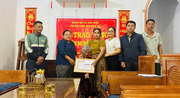 Theo các Quyết định của Ban Thường vụ Tỉnh ủy Quảng Ngãi trao tặng Huy hiệu Đảng dịp đợt 02/9/2025, Ban Thường vụ Đảng ủy xã Đăk Môn đã tổ chức trao tặng Huy hiệu 60 năm tuổi Đảng cho đồng chí Y Minh, đảng viên Chi bộ thôn Broong Mỹ và trao tặng Huy hiệu 55 năm tuổi Đảng cho đồng chí A Nhá, đảng viên Chi bộ thôn Đăk Tum.
