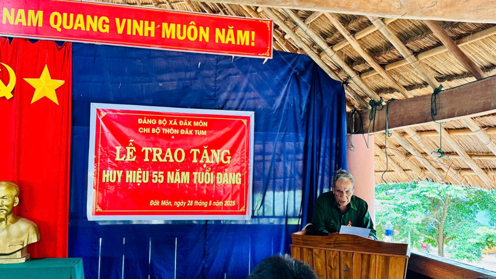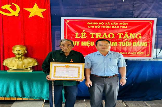 Ngày 28-8-2025, Ban Thường vụ Đảng ủy xã Đăk Môn đã long trọng tổ chức Lễ trao tặng Huy hiệu 55 năm tuổi Đảng, 60 năm tuổi Đảng cho 02 đồng chí.