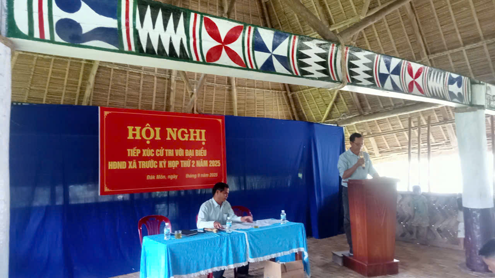 Thực hiện Kế hoạch số 02/KH-TTHĐND ngày 05/9/2025 của Thường trực HĐND xã về tiếp xúc cử tri trước Kỳ họp thứ 2 khóa XV, nhiệm kỳ 2021- 2026. Sáng ngày 17/9, Thường trực HĐND xã tổ chức cho đại biểu HĐND tiếp xúc với cử tri tại thôn Đăk Wâk và thôn Đăk Gô. Tham dự buổi tiếp xúc có đồng chí A Thẳng- UVBTV, Phó chủ tịch HĐND xã, lãnh đạo UBND xã Trưởng các Phòng chuyên môn, các đơn vị trên địa bàn xã và hơn 300 cử tri đại diện của 2 Thôn cùng tham dự. Tại buổi tiếp xúc, cử tri bày tỏ lời cảm ơn đối với sự quan tâm, hỗ trợ của chính quyền xã trong thời gian qua; nhiều kiến nghị, công việc tồn đọng đã được giải quyết, góp phần làm thay đổi, khởi sắc bộ mặt địa phương.
